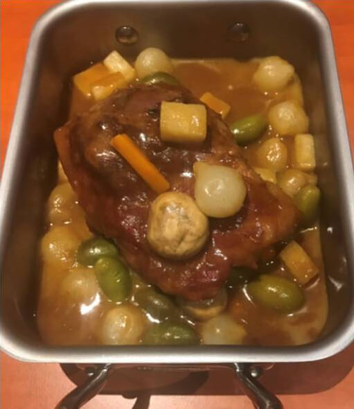 Belle Joue de cochon sur os aux olives Lucques